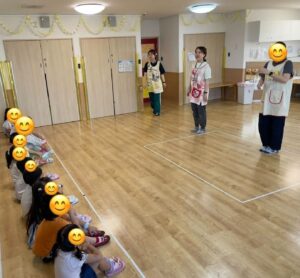 保育園という場所は、子どもたちにとって毎日を過ごす大切な「生活の場」です。朝の「おはよう」から夕方の「さようなら」まで笑ったり泣いたり、時には喧嘩をしたりしながら、沢山の経験を積み重ねています。ですが、保護者の皆さんにとっては、そんな子どもたちの一日の様子を実際に見る機会はなかなかありません。お迎えの時に先生とお話ししたり、連絡帳を通してやりとりしたりする中で「どんな風に過ごしているのかな?」と気になる方も多いのではないでしょうか。そこでキートスでは、保護者の方に実際にクラスに入ってもらい、先生として子どもたちと一緒に過ごしていただく『先生体験』を行っています! 当日は、朝の会や遊びの中での導入、遊びの展開やまとめ方など、普段先生達が行っている保育の流れをそのまま体験して頂いています!最初は少し緊張される方も多いのですが、子どもたちの「○○ちゃんのお母さんが来てるー!」「一緒に遊ぼう!」という元気な声に迎えられると、自然と笑顔になっていきます😊いつもは見守る立場の保護者が、子どもたちと一緒に遊び、歌ったり、踊ったりと先生体験を通して、園での生活を肌で感じて頂ける物になっています。