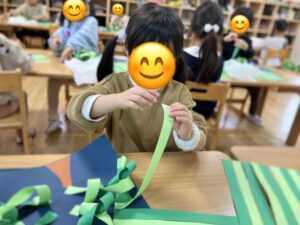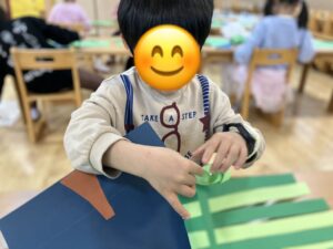 作業中の子どもたちの表情は真剣そのもので、紙とにらめっこしながら黙々と取り組む姿に、近くで密かに応援をしながら完成を待っていると、「見て!出来た!!」と嬉しそうに持ってきてくれる姿が可愛らしく、子どもが作り上げたものには、その一つひとつに気持ちやストーリーが宿っているのだと改めて感じました☺️👏