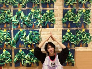そして、廊下には大きなクリスマスツリーを飾ると、クリスマスツリーのオーナメントでキャンディ、クッキー、リボンなど可愛らしい装飾を見ると子ども達も「これめっちゃ可愛いね~?」「〇〇ちゃんのお家にもある〜!」と嬉しそうに指をさし、教えてくれる姿がありました😊🎄
