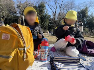 動物公園に到着してまず行ったのは、広場でのお弁当タイム🍱レジャーシートを広げ、「ここに座ろう!」「一緒に食べよ!」と、自然と友達同士で場所を決める姿が見られました。いつもは保育園で給食を食べているので、友達と外でお弁当を食べるというだけで、特別感がぐっと増します✨「早く開けたい!」「見て見て〜!」と、待ちきれない様子でお弁当のふたを開ける姿がとても印象的でした。お弁当の中には、大好きな具材がたくさん詰まっていたり、かわいらしいキャラクターのお弁当があったり😊