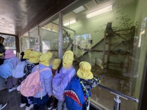 図鑑や写真で見るのとは違い、実際に見る・感じる体験は、子どもたちの心に強く残ります。友達と同じものを見て、同じ瞬間に驚きや発見を共有できることも、園外活動ならではの大切な経験です🌱中でも特に印象に残ったのが、モンキーゾーンで出会ったフクロテナガザルでした。特徴的で迫力のある鳴き声が聞こえてくると、子どもたちは一斉に足を止め、目を輝かせていました👀✨「すごい声!」「なんか叫んでる!」と興味津々な様子で見つめるうちに、今度は子どもたち自身が鳴き声を真似し始め、お猿さんになりきって「ウワー!ウワー!」と声を出す姿も🐒その無邪気な姿に、職員も思わず笑顔になりました😊