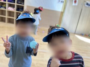 2歳児クラスでは、鬼の帽子づくりに挑戦🧢✨画用紙の鬼の顔のパーツや毛糸を使って製作し、「これは○○ちゃんの鬼!」と誇らしげな表情。自分で作った鬼は、なんだか少し愛着が湧いているようでした!