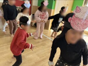 年下の子ども達も、「先生の鬼」ではなく「お兄さん・お姉さんの鬼」という存在に、どこか安心感を持っている様子でした。少し固まっている子もいましたが、近くでそっと様子を見る年上の子の姿に、異年齢ならではの温かさを感じました。