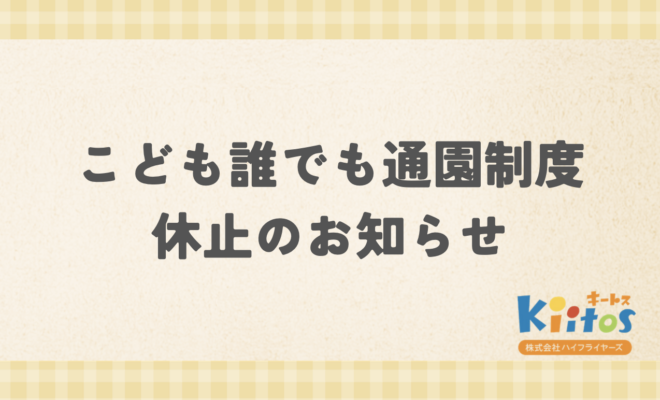 来年度より「こども誰でも通園制度」の実施を休止させていただくこととなりました。再開時期につきましては、現時点では未定となっております。なお、現在ご利用中の方につきましては、2026年3月末までご利用いただけます。ご利用をご検討いただいている…