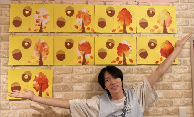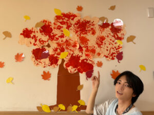 こうして各クラスの作品を見比べてみると、同じ「秋」という季節でも、年齢ごとに表現の仕方がこんなに違うのかと驚かされます。どの作品にも共通しているのは、子どもたちが自分で考え、楽しみながら表現しているということだと感じました。そこには大人が用意した枠を超えた、子どもならではの自由な発想が溢れていました。園内に並んだ秋の作品を眺めながら、子どもたちの成長を改めて実感しました。そして、これからも季節の移ろいを大切にしながら、子どもたちと一緒に表現する喜びを味わっていきたいと思います🍁🍂