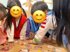 【かるた遊び】年中さんから年長さんを中心に、文字を読む力が育ってきた今だからこそ楽しめるかるた遊びを行いました🃏
