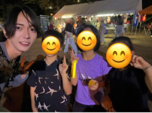 お祭りには保護者の方も来られていたので、久しぶりにご挨拶させて頂くと「かい先生だ!なんで居るんですか!!」「久しぶりに会えて嬉しいです〜!」「たまにTikTokとかで見てますよ!」